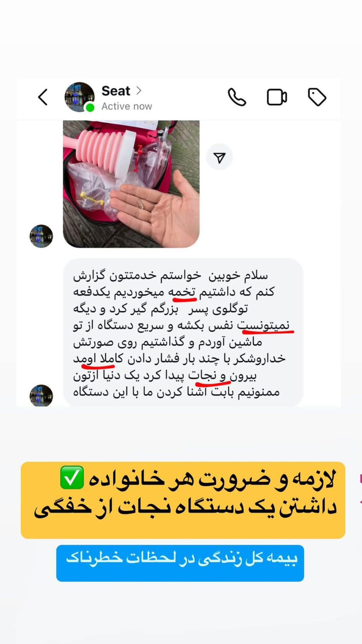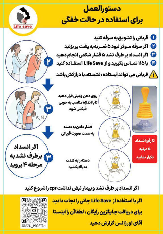 مشخصه ویژگی: 🌱 دستگاه نجات از خفگی (life_save ) شامل : _عدد مکنده life_save _یک ماسک اطفال متناسب با سن کودکتون 👼 _ یک ماسک بزرگسال متناسب برای و نوجوانان و بزرگسالان _یک دستورالعمل آموزشی به همراه فیلم آموزشی _یک کیف که دربرگیرنده همه موارد فوق میباشد.